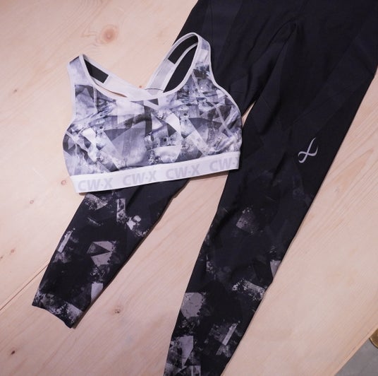 マーブル柄ハイネックブラトップス 13,200円、マーブル柄フルレギンス 14,850円