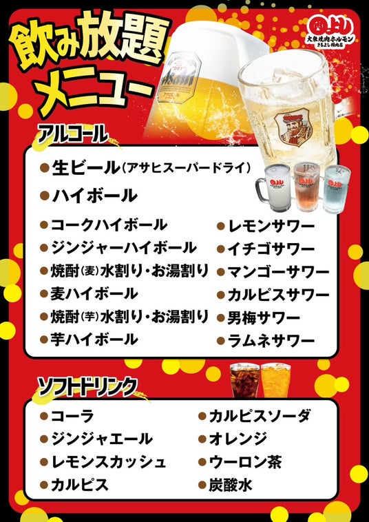 さらに衝撃!60分528円(税込580円)でほぼ全メニュー飲み放題!