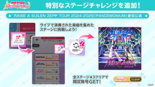 スマートフォン向けゲーム「バンドリ! ガールズバンドパーティ!」内、ステージチャレンジ「特別」に、本ライブで演奏された楽曲を集めたステージを追加しました。