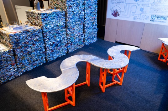 会場には3つのプロダクト以外にも、アルミ缶リサイクルの工程で分類される各種アルミニウムや、リサイクルされる前のブロック上に圧縮されたアルミ缶なども展示しました。これらの展示物は、リサイクルプロセスの可視化を通じて、リサイクルアルミニウムがどのように新たな価値を生み出すかを具体的に伝える役割を果たしており、多くの来場者に関心を持ってもらえたようでした。