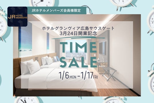 株式会社ジェイアール西日本ホテル開発(京都府京都市下京区、代表取締役社長 伊勢 正文)は、2025年3月24日(月)に「ホテルグランヴィア広島サウスゲート」が新たに開業することを記念し、JRホテルメンバーズ会員様を対象とした宿泊タイムセールを実施いたします。