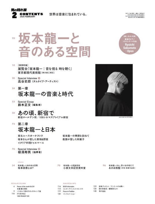 好評発売中!男の隠れ家2025年2月号 世界は音楽に包まれている。「坂本龍一と音のある空間」