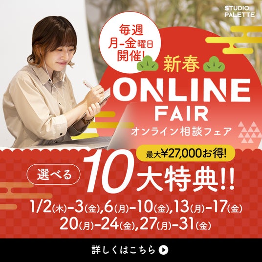 【毎週月-金開催】新春オンライン相談FAIR!2025年はスタジオデビュー。最大¥27,000おトクになる"選べる10大特典"
