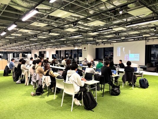 本講座は、オンラインとオフラインのハイブリッド型で行われ、オフラインの会場はGINZA SIXにあるプレイドオフィスの一角にある芝生スペースにて開催されました。Xデザイン学校の学生をはじめ、デザイン文化について興味のある方々が一堂に会し、交流を深めました。