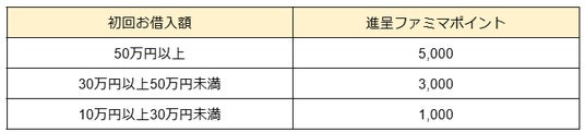 キャンペーン期間中にファミペイローンにはじめてご契約いただいた方の場合、1,500円相当の期間限定ファミマポイントを進呈いたします。