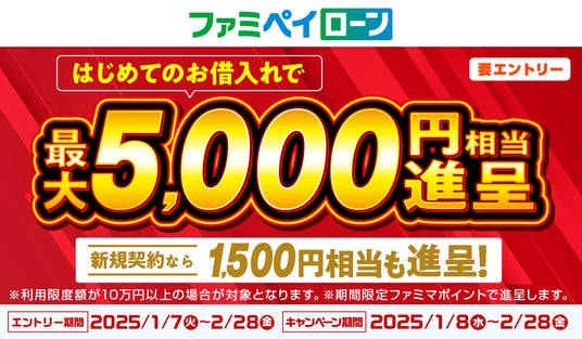 ファミマのアプリ「ファミペイ」内で金融サービスを提供する株式会社ファミマデジタルワン(本社:東京都港区、代表取締役社長:中野和浩)は2025年1月8日(水)より「ファミペイローン」のおトクなキャンペーンを実施いたします。