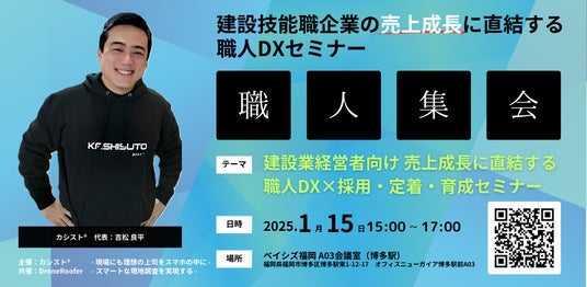 「カシスト(R)︎」 建設技能職企業の売上成長に直結する職人DXセミナー「職人集会」を1月15日福岡市博多にて開催、建設業の採用・育成・定着を一気通貫で支援