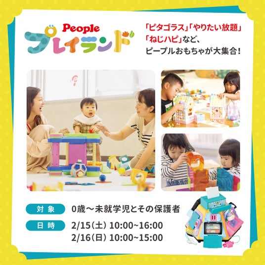 「やりたい放題」「ピタゴラス」「ねじハピ」など、ピープルおもちゃが大集合!赤ちゃん・子ども観察からうまれた"好奇心はじける"おもちゃで思い切り遊べます。予約不要。