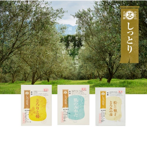 【芯までしっとり】植物、果実由来の天然オイル。海洋深層水から採れた海塩。自然の恵みが、身体を優しく撫でてくれるような湯触りも特徴のシリーズです。湯上り後も、しっとりが続きます。