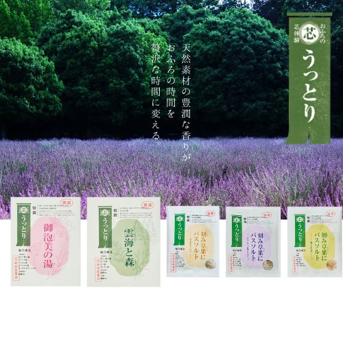 【芯までさっぱり】豊潤な香りが浴場いっぱいに立ち上がる、いつまでも湯に浸っていたくなるような麗しいシリーズです。天然素材の精油をはじめ自然の恵みが、おふろの時間を贅沢な時間に変えてくれます。