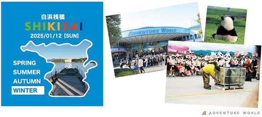 アドベンチャーワールド(和歌山県白浜町)は、白浜桟橋エリアで開催される街歩きイベント「SHIKISAI」vol.4にブース出展いたします。SHIKISAIは春夏秋冬それぞれの季節ごとにテーマカラーを設けて開催され、地域の特色を活かしたブースや企画が並び、「地域もお店もお客さまもカラーで繋がっていて境目がない」そんなイベントを目指しています。寒い冬こそ歩いて和歌山の魅力あふれるお店と街並みに出会い、心も身体もぽかぽか温まりませんか♪