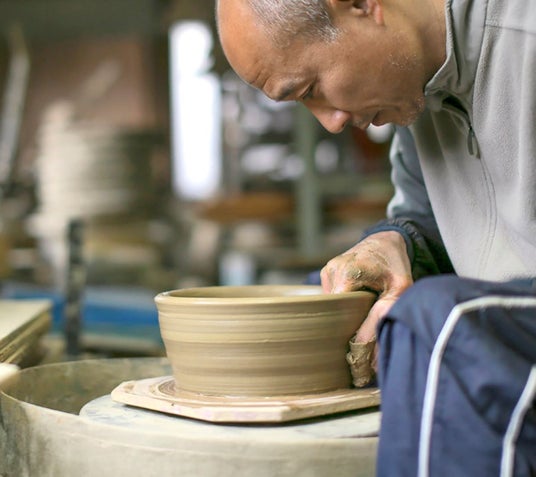 植木鉢に特化した窯元。伝市窯の作る“伝市鉢”は、通気性や水捌けに独自の工夫がなされており、大きさや形、草花を育てる様々な用途に合うよう工夫を重ねてきました。“波付き”や“花付き”などの美しい文様は、草花をより一層引き立てます。
