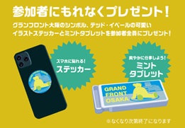 グランフロント大阪のシンボル、「テッド・イベール」の特製ステッカーとミントタブレットを参加者全員にプレゼントします。グランフロント大阪に親しみや愛着を持ってもっていただくようなデザインにしました。働く就業者がパソコンやスマホに貼ってくれることを期待しています。
