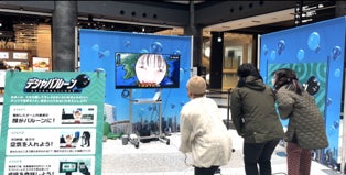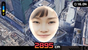 自転車の空気入れのようなポンプを全力で押すと、チーム代表者の顔を取り込んだ顔型バルーンに空気が入り、顔がどんどん膨らんでいきます。制限時間30秒で膨らませられた顔型バルーンの大きさに応じて、得点できます。最初はグランフロント大阪を象徴する屋外スペース「うめきた広場」からスタートし、大きくなるとJR大阪駅が見え、頑張れば宇宙に行くこともできます。自分の存在感をアピールしたくなるでしょう。