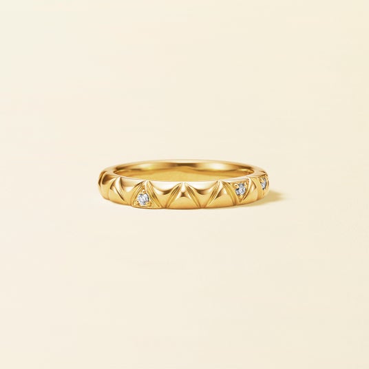 太陽の輝きをイメージした地金が立体的にデザインされた、洗練されたシリーズ。側面にセッティングされたダイヤモンドがさりげなく輝くネックレス、ピアスは身に着けるだけでリュクスな輝きをプラスしてくれます。三角形が連なるふっくらとしたフォルムが程よく個性を与えてくれるイヤーカフやリングも登場。ダイヤモンドと地金の2way仕様で、気分やスタイルに合わせてお楽しみいただけるデザインで耳元に華やかさをプラスします。サークルを連ねた個性的なフォルムが印象的なネックレス、リングは太陽の輝きをイメージしたデザインと、地金とダイヤモンドのコントラストがエレガントな雰囲気を演出します。太陽の力強いパワーを携えたジュエリーは、お守りとして新しいことを始める願掛けとしてもおすすめです。