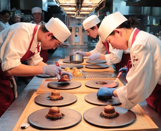 学生が当校で身につけた知識と技術を駆使し、心を込めた調理とおもてなしによるフランス料理のフルコースを提供します。