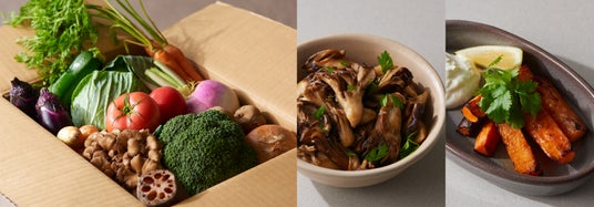 今回のコラボレーション商品は、Plan・Do・Seeのシェフたちが甲信地方の「ご馳走旅」で出会った、長野県を拠点に日本全国の土壌や産地の特徴を網羅し各地の協力生産者たちと連携しながら、その土地にベストな野菜をお届けする農業会社、栄農人(エナジー)によって生産された食材と、オリジナルレシピ12品がセットになっています。多種多様な季節の美味しい野菜は、MINI(14cm)なら2,500円相当を年2回、22cm浅型なら3,500円相当を年2回、22cm深型なら3,500円相当を年4回お届け。クール便送料込みの大変お得なセットです。