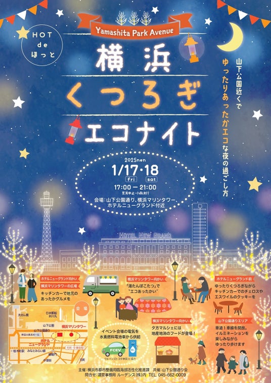 山下公園通り周辺で地元グルメやコタツを満喫するゆったりくつろぎイベント「横浜くつろぎエコナイト ~Yamashita Park Avenue~」を開催!【1月17日、18日】