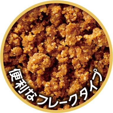 溶けやすく、量の調節がしやすいフレーク状です。パッケージの裏面では、フレークならではの便利な使い方やおいしい召し上がり方を紹介しています。
