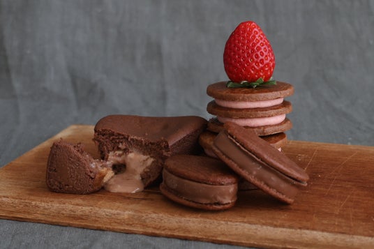 フランボワーズのチョコレートには、ルビーカカオからつくられたほんのり酸味のある