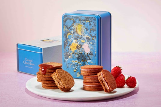 数量限定の「キャラメルパーティボックス」は、キャラメル味のクッキーと紅茶の茶葉入りのキャラメル・チョコレートが相性抜群の“キャラメルチョコレートクッキー”、季節限定の華やかなイチゴの美味しさを閉じ込めた“キャラメルチョコレートクッキー イチゴ”の両方を味わえる詰合せ。5層仕立てのクッキーは、サクサク食感が特徴の楽しい食べ心地。どちらもキャラメルオバケが腕によりをかけたお菓子たち。
