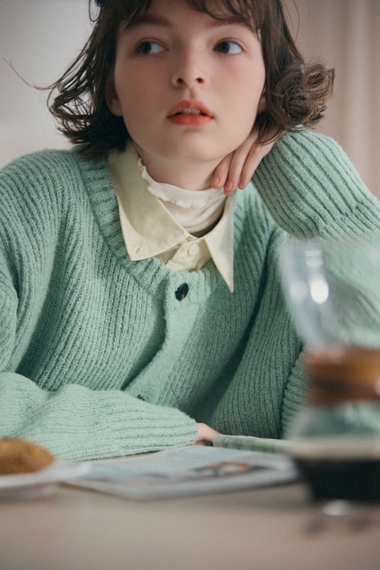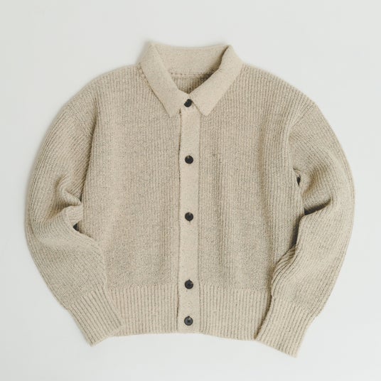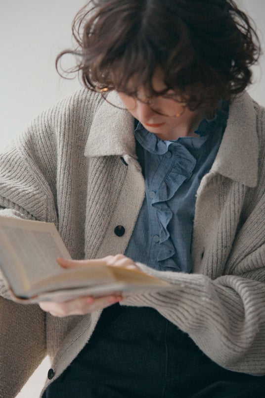 【from UMI】「今回FUDGEと一緒にオリジナル商品を作る機会をいただいて、ワクワクする時間を過ごさせていただきました。テーマは着回し力。よく着こなしのお悩みや質問をいただくこともあり、1枚で幅広くコーディネートを楽しむことができるものを作ろうと決めました。それはつまりずっと長く愛してもらえるものを作るということでもあります。シンプルながらも可愛らしさを忘れない。そんなFUDGEと私らしさのこだわりを詰め込んだニットカーディガンができあがったと思っています。その日の気分によって襟が取り外せたり、どんなボトムスとも合わせやすいサイズ感と形。袖と裾の長めのリブも可愛いポイントです。色はよく見ると1色ではなく、別々の2つの糸を選び組み合わせて編み込み、オリジナルの色味と風合いに仕上げています(ハート)ロングシーズンお使いいただけるように、起毛させ過ぎない素材感にもこだわりました。長く愛用していただけるようなものに仕上げられたと思いますので、皆さまのもとへ届くのが楽しみです!