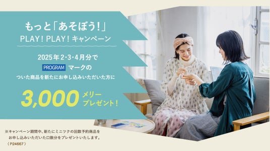 新年のことはじめにもぴったりのキャンペーンとして、2025年2・3・4月分(2025年3月25日まで)で【PROGRAM】【ミニツクト】マークのついた商品を新たに申し込んだ方に3,000メリーポイントをプレゼント。お得に始められるチャンスです。