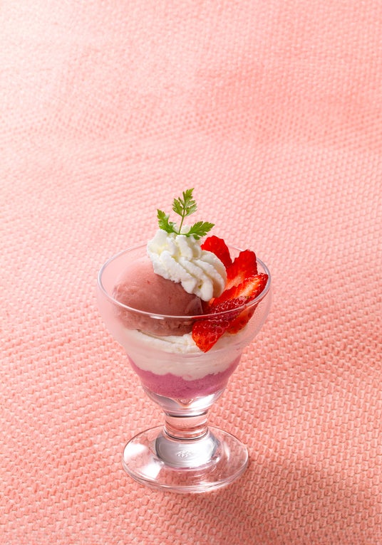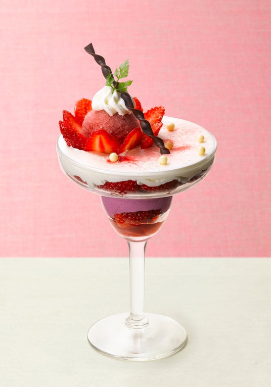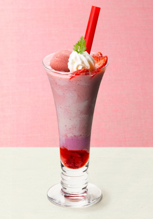 苺みるくのスムージーにベリームースを合わせ、フレッシュ苺と苺のソルベ、ホイップクリームを添えました。混ぜるほどに苺とベリーの味わいが豊かになる美味しさをご堪能ください。