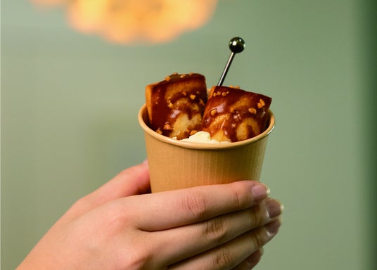 第1弾は、神戸ルミナリエのKOBEディライト・ファウンテン Premium Diningで、焼き立てのフィナンシェをチョコレートファウンテンから流れるソースにかけてお召し上がりいただく、ライブ感のある新しいフィナンシェの楽しみ方を提供します。当日は、焼きたてのアーモンドとバターが香るあたたかなフィナンシェと、3種類のソースをご用意します。さらにいちごとチーズのソースは、流れるソースファウンテンにフィナンシェをダイブさせてご提供します。