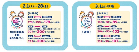 2.鉄道乗車ポイントサービス「京王トレインポイント」に登録している小児会員を対象とし、通常お子さまが小児運賃で乗車する場合、1回の乗車ごとに当社線の乗車運賃の50%分の「京王トレインポイント」を付与するところ、対象期間中は100%分還元。京王線・井の頭線の小児運賃を実質無料とする
