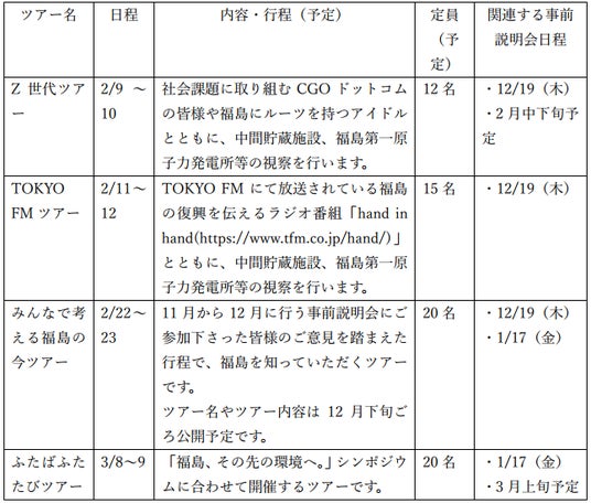 一般公募型 福島環境再生ツアー、及び事前説明会の概要