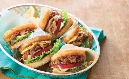 ▲賞品の「焼きおにぎりバーガー(産直米・国産牛焼肉) 2個240g」