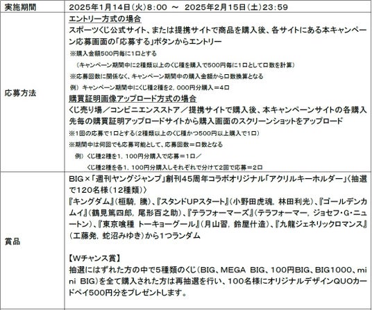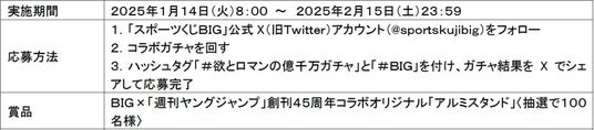BIG×「週刊ヤングジャンプ」創刊45周年コラボを楽しんでいただけるキャンペーンは3種です。