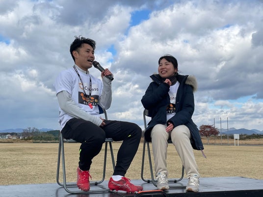 森下選手とサイキンソーに所属する管理栄養士の藤井、対談の様子