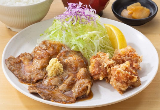 すりおろしの生姜がアクセント、やわらかで食べ応えのある生姜焼き。サクサクの衣に包まれ、中はジューシーでふっくらとした唐揚げ。見た目と香りから食欲をそそる逸品です。