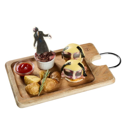京様をイメージした特製バーガー。つけ毛がポイント♪