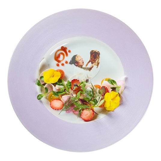 ぷんちゅまと京様がお花畑を散歩するイメージの可愛いらしいサラダです。