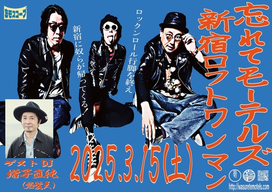東京・町田を拠点に全国各地であばれ回るスリーピースロックンロールバンド・忘れてモーテルズの、2025年3月15日(土)に開催される初の新宿LOFTワンマンライブに、怒髪天のボーカル・増子直純のDJ出演が決定した。