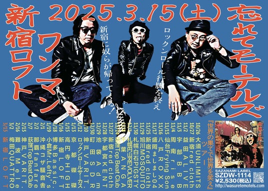 忘れてモーテルズは2024年10月23日に8thフルアルバム『世界の果てで世界を笑え』を発売、現在全国ツアーを開催中。新宿LOFTでのワンマンライブはそのツアーファイナルとなる。