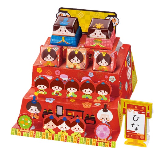 外箱を組み立てると立体的なひな壇に変身する、ひなまつり限定商品♫