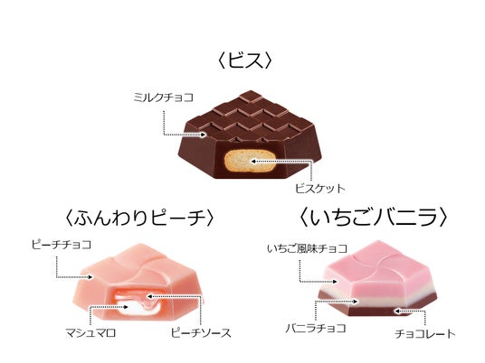 味は定番人気の〈ビス〉とひなまつり限定フレーバー〈ふんわりピーチ〉〈いちごバニラ〉の3種類入り♪