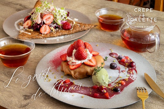 神戸・元町トアウエストにあるクレープとガレットの専門店「CREPE & GALETTE TOOTH TOOTH」にて、冬においしい苺のガレット&クレープが登場!2025年1月16日(木)より。