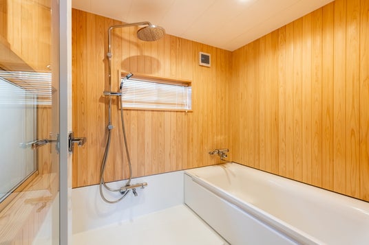 木に囲まれた広いバスルーム
