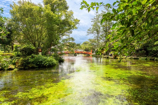 緑が広がる夏の湧玉池