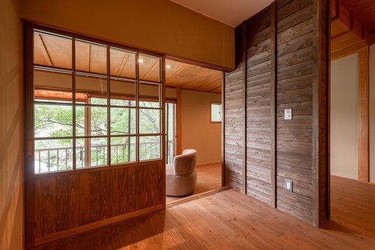 富士山本宮浅間大社の竹林に隣接しており、お部屋の中の移動の際に、自然の匂いや、風を、感じることができるようデザインされました。