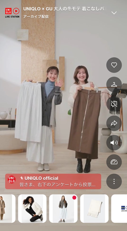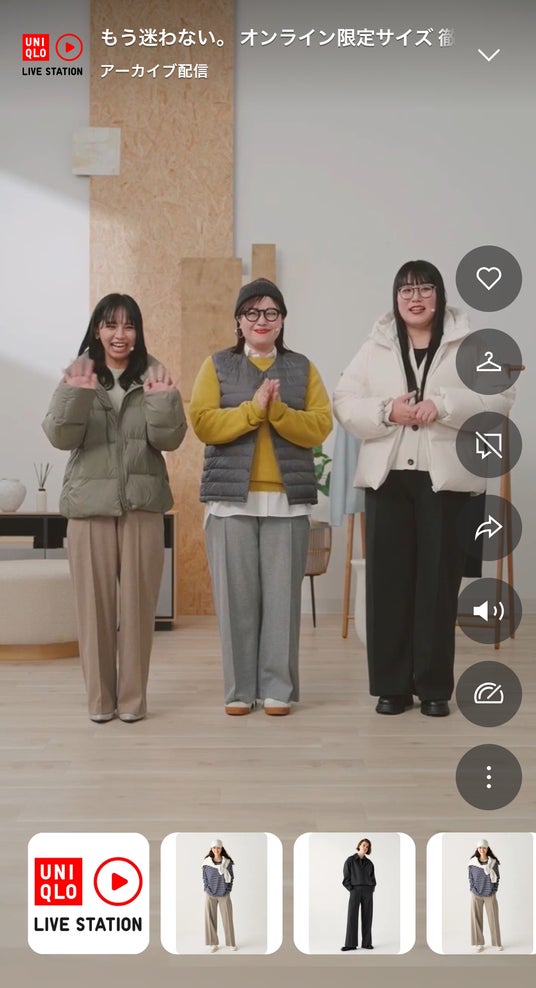 UNIQLO LIVE STATIONは、ユニクロアプリやSNSでライブ配信を見ながら、気になった商品をその場で購入できる新しいサービスです。