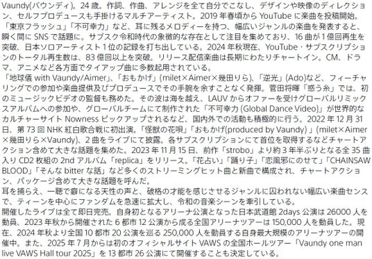 Vaundy、YOASOBI、羊文学、BABYMONSTER、Creepy Nuts、牛尾 憲輔