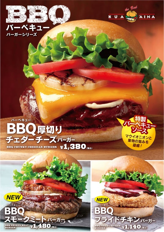 クア・アイナ『BBQバーガーシリーズ』に新商品2品が登場!! 燻製の香りが相性抜群の「BBQスモークミートバーガー」 サクッとジューシーな「BBQフライドチキンバーガー」
