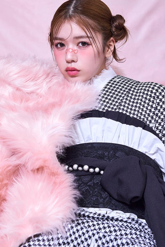 コーディネート次第でモードにもガーリーにもできるオリジナルの総千鳥格子柄振袖を
