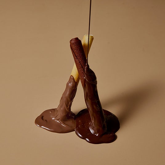 ロングセラー商品「シガール(R)」にたっぷりとチョコレートをまとわせた「ショコラ シガール」。